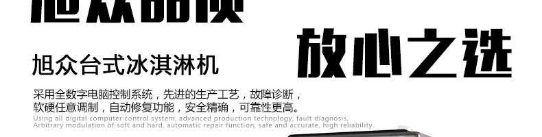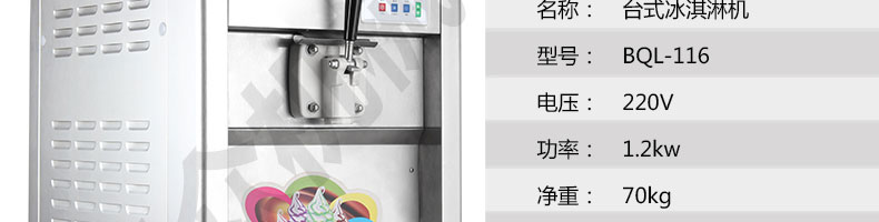 BQL-116臺(tái)式冰淇淋機(jī),●選用國(guó)際名牌成熟制冷配套件和高效壓縮機(jī),融合旭眾精湛工藝輔以嚴(yán)格的質(zhì)量控制流程,使產(chǎn)品整體性能及品質(zhì)得以全面提升?!癫捎萌珨?shù)字電腦控制系統(tǒng),選用名牌優(yōu)質(zhì)電器元件,先進(jìn)的生產(chǎn)工藝,故障診斷,軟硬任意調(diào)制,自動(dòng)修復(fù)功能,安全精確,可靠性更高?!駥I(yè)成熟制冷系統(tǒng)設(shè)計(jì),選用世界名牌大功率專用壓縮機(jī),大大縮短冰淇淋成型時(shí)間,相同時(shí)間內(nèi)冰淇淋產(chǎn)量大幅度增加,使您生意火爆時(shí)依然得心應(yīng)手,為您創(chuàng)造財(cái)富。●安全平穩(wěn)的機(jī)械攪拌系統(tǒng),噪音更低、振動(dòng)更小,使整機(jī)運(yùn)行性能達(dá)到國(guó)際先進(jìn)水平。●確保進(jìn)料溫度在0°C~35°C;環(huán)境溫度5°C~40°C勻可正常使用。