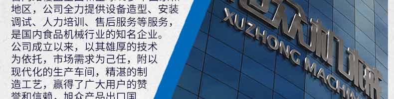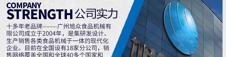 廣州旭眾食品機(jī)械有限公司是一家集科研開發(fā),生產(chǎn)設(shè)計(jì),營銷服務(wù)為一體的現(xiàn)代化生產(chǎn)企業(yè)。現(xiàn)代化生產(chǎn)車間,精湛制造技術(shù),所產(chǎn)機(jī)械歷經(jīng)市場重重考驗(yàn),不斷贏得海內(nèi)外客戶的贊譽(yù)。