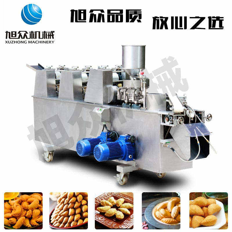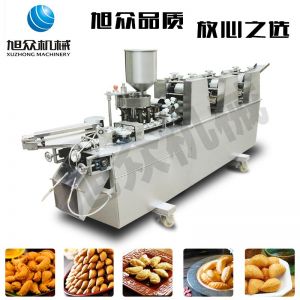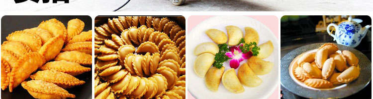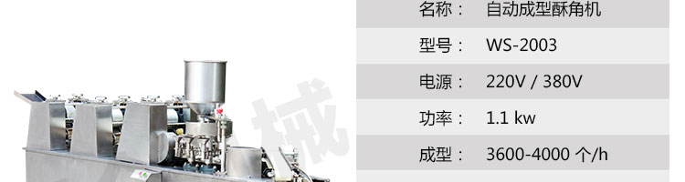 WS-2003 型自動成型酥角機(jī)(油餃機(jī)),適用于制作酥角、油餃,可包的餡有:花生、椰蓉、白糖等。適合多種面粉材料、并且成型封口美觀牢固。小模約47mm,大模約57mm隨機(jī)標(biāo)配一套模具。購機(jī)贈送工藝配方。
