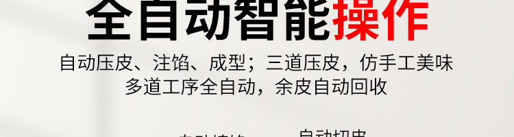 JGB-10型一體式餃子機,制皮成型一體餃子機,科技化生產(chǎn)/人性化設(shè)計。餃型可蒸、可炸、可煮,可適應(yīng)不同場合的客戶需求。功能、智能一體,以自動化科技與過硬質(zhì)量貼心服務(wù)。