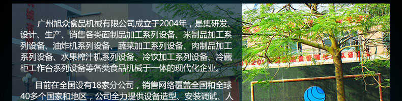 廣州旭眾食品機(jī)械有限公司是一家集科研開(kāi)發(fā),生產(chǎn)設(shè)計(jì),營(yíng)銷(xiāo)服務(wù)為一體的現(xiàn)代化生產(chǎn)企業(yè)?,F(xiàn)代化生產(chǎn)車(chē)間,精湛制造技術(shù),所產(chǎn)機(jī)械歷經(jīng)市場(chǎng)重重考驗(yàn),不斷贏得海內(nèi)外客戶(hù)的贊譽(yù)。