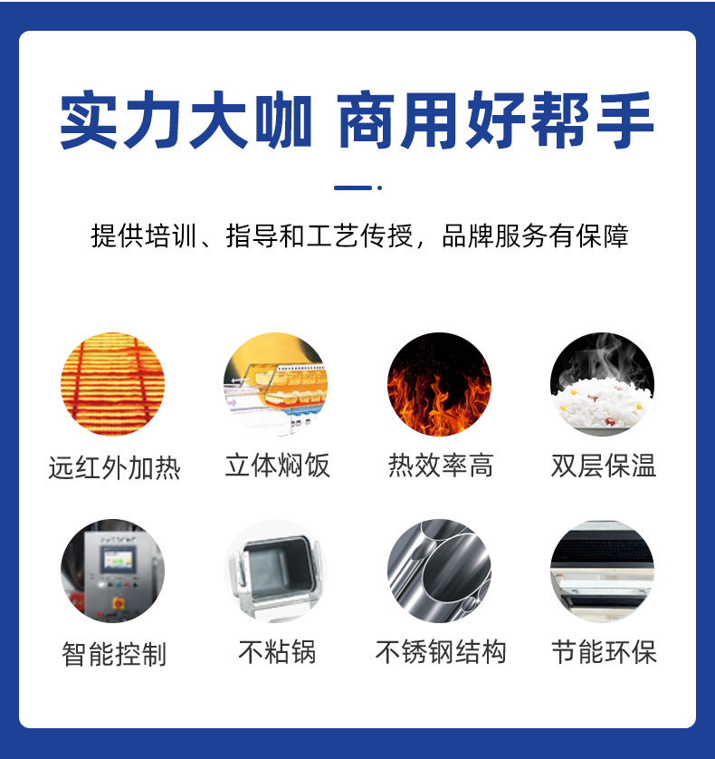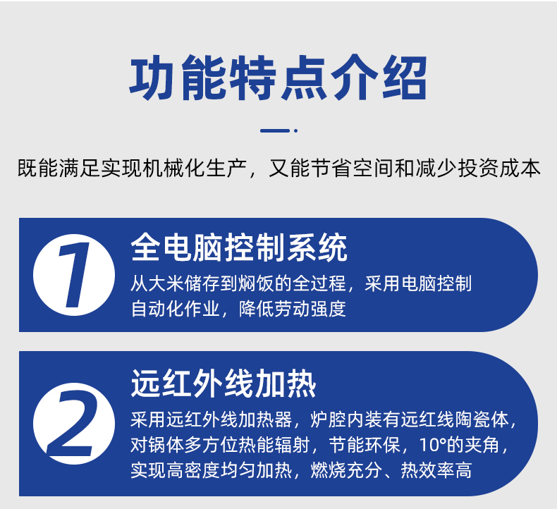 機械手全自動米飯生產線,實力大咖 商用好幫手,提供培訓、指導和工藝傳授,品牌服務有保障。遠紅外加熱、智能控制、立體燜飯、不粘鍋、熱效率高、不銹鋼結構、雙層保溫、節(jié)能環(huán)保。