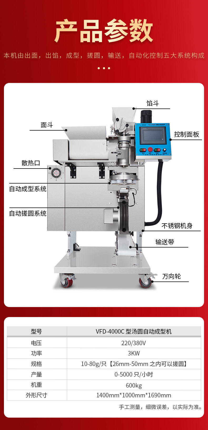 4000C湯圓機,多功能湯圓機,運行穩(wěn)定、時產(chǎn)量高、大小可調(diào)。制品多樣性生產(chǎn)各種大小規(guī)格不同的有餡湯圓,無餡湯圓、豆沙包、南瓜餅,芝麻球,地瓜丸,香芋丸,葉兒粑,青團,粘豆包等。
