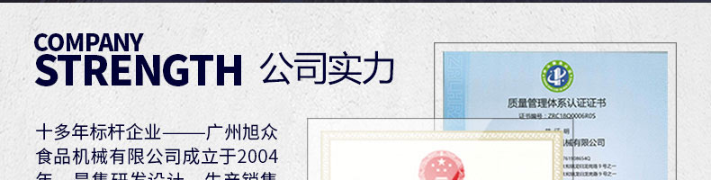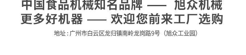 廣州旭眾食品機(jī)械有限公司是一家集科研開發(fā),生產(chǎn)設(shè)計(jì),營(yíng)銷服務(wù)為一體的現(xiàn)代化生產(chǎn)企業(yè)。現(xiàn)代化生產(chǎn)車間,精湛制造技術(shù),所產(chǎn)機(jī)械歷經(jīng)市場(chǎng)重重考驗(yàn),不斷贏得海內(nèi)外客戶的贊譽(yù)。